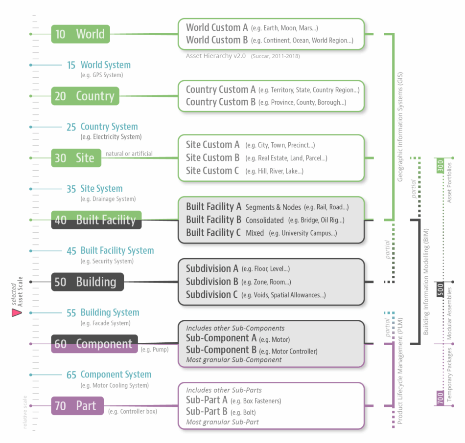The Asset Hierarchy model organises Physical Deliverables/Assets by relative scale