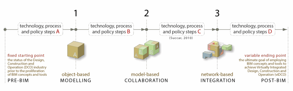 The BIM Stages Model identifies pre-BIM, three BIM Capability Stages and the ultimate vision from implementing BIM.