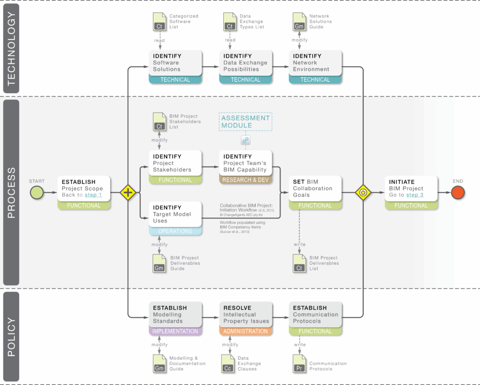The Competency-based workflow uses BIM competency items from across several Competency Sets to clarify a specific process – how to initiate a collaborative BIM project.