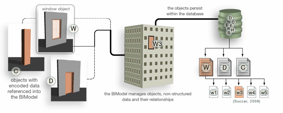 Building information models (note Models not Modelling) are a collection of objects represent ing physical elements like doors, columns and their host spaces. BIModels encapsulate a level of machine ‘intelligence’ in how these objects and spaces relate to each other.