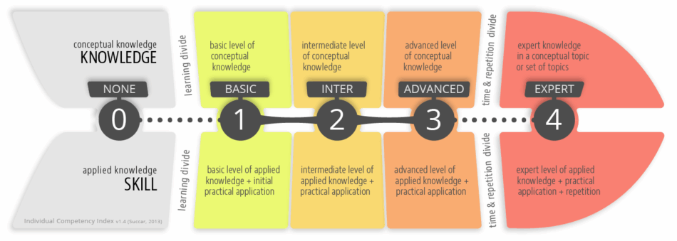 Individual Competency Index (older version v1.2) The Individual Competency Index (ICI) measures both conceptual knowledge (referred to as knowledge) and procedural knowledge (referred to as skill) which are needed by individuals in order to perform a defined activity or deliver a measureable outcome. The ICI identifies five competency levels (0-4): Level 0 (none) denotes a lack of competence in a specific …