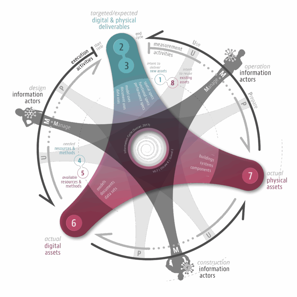 The Information Cycles employs the three Project Lifecycle Phases – Design, Construction, and Operation (Succar, 2009) – to identify Information Actors and their high-level Information Actions connecting several Information Milestones within the Lifecycle Information Transformation and Exchange (LITE) framework (Succar and Poirier, 2020).