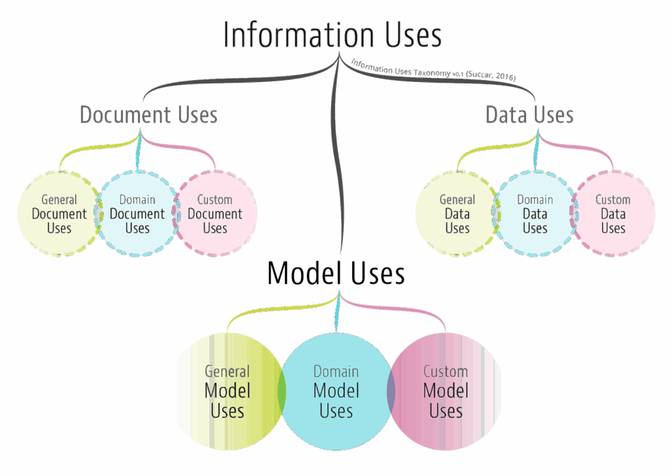 Figure 1. Model Uses Taxonomy The Model Uses Taxonomy organises Model Uses into a tiered structure that allows: (a) collation of Model Uses from across different industries; (b) close alignment with the Competency Taxonomy (Succar et al., 2013 – http://bit.ly/BIMpaperA6); (c) custom use-cases for unique projects; and (d) future expansion towards whole of life cycle classifications. The Model Uses Taxonomy …
